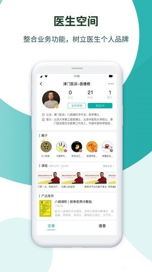5.个人空间更加突出医生个人品牌,一站式了解专家的课程、产品、圈子、文章