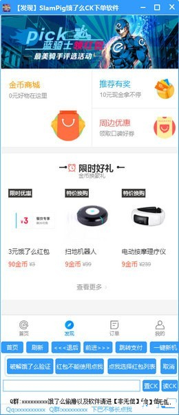 SlamPig饿了么CK下单软件是一款绿色无毒的刷单软件。该软件操作简单,安全可靠。通过SlamPig饿了么CK下单软件免费版用户可以刷“饿了么”上的订单数量,是饿了么商家起步的必备工具。