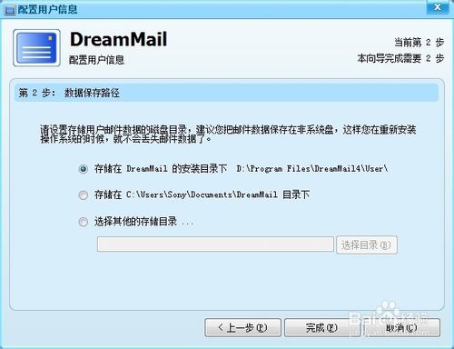 3.选择邮件的储存位置,建议选择第一项,当然如果你需要放在特别的地方,那也是可以的