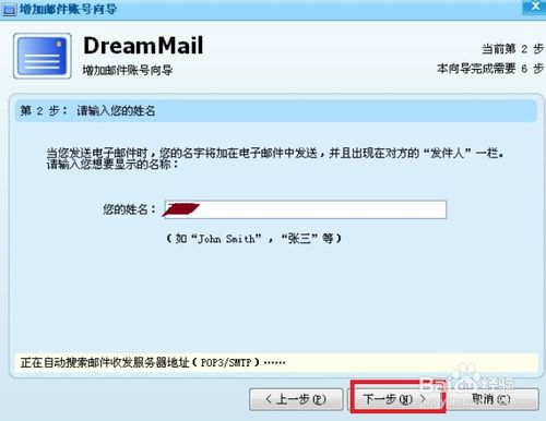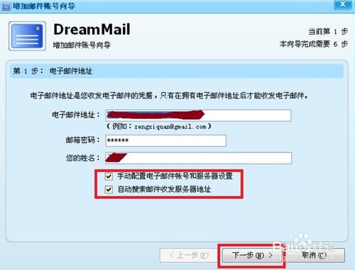 4.添加邮件地址,配置邮件账号,主要如果是企业邮箱,那么下面的手动配置电子邮件账号和服务器设置是需要√上的,姓名那页写你想展示在收件人的名字,登陆名至自动填充的