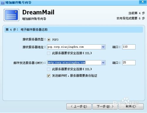 5.配置邮件接受和发送服务器信息,要注意端口信息