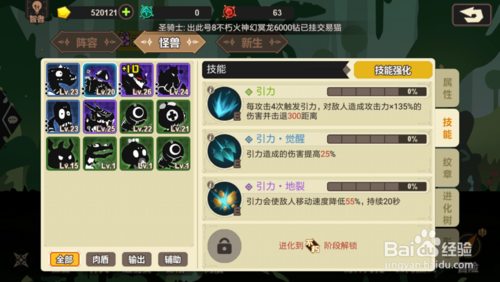 2、强化怪兽的技能,技能强化的等阶越高,打出的伤害越高。