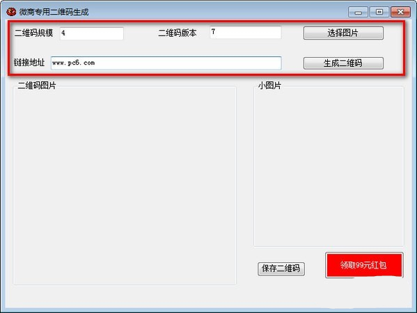 2、打开软件之后可以选择添加二维码上的小图片以及链接地址;