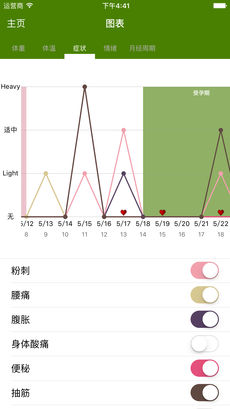经期跟踪器是一款非常好用的手机女性经期跟踪软件,该软件为用户提供了智能计算,通过它能查看到您当月或未来的经期日期,并且还能了解到情绪和各种症状信息,让您在特殊时期时避免尴尬。