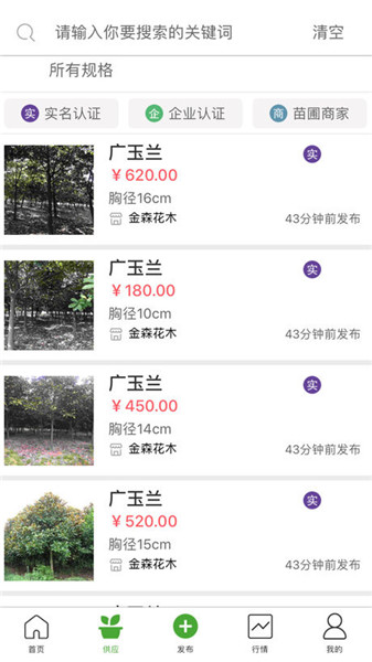 由万臻生态科技有限公司精心打造。“花木源”是一个随时、随地、随身的花木信息交流展示平台。“花木源”---打造全国最大的移动苗木商城!1.基于地理位置的供货信息(最近、最便宜的供货信息),与金牌经纪人直接进行在线交易,与普通商户可在线下单,线下交易,供货信誉体系保证;