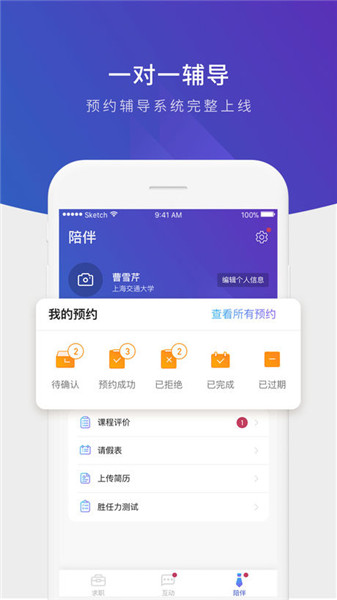 帮助导师和学员之间进行更顺畅直接的交流,让学员更容易的获取线上教育资源,跟导师和学员之间有更多互动,一起求职,让大学生学习更容易!