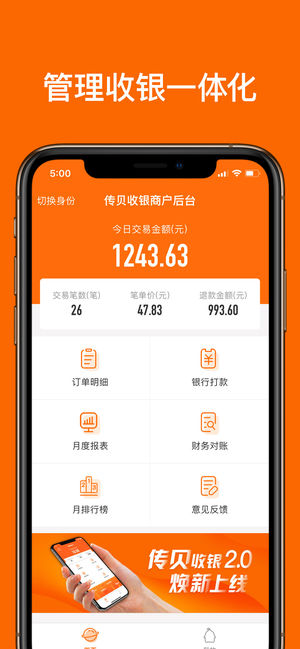 传贝是专门为商家量身打造的一款,移动收钱管理一体的客户端,为商家提供全场景、多通道的移动支付解决方案,同时提供了更便捷的记账、扎账、多店管理等服务帮助,从此摆脱电脑的束缚。从现在开始,随时随地接单,随时随地管理,让你的生意变得更轻松,让传贝App成为您的全能生意帮手。