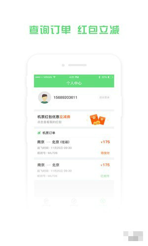 1.机票首页全新改版,新增订单直达。