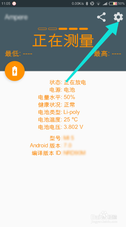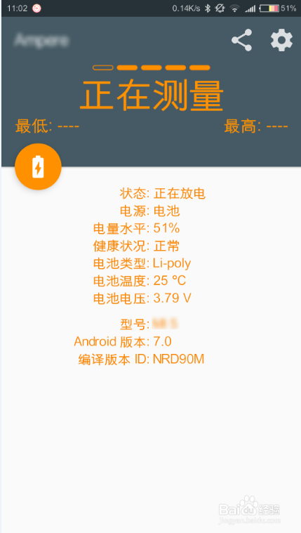打开应用之后稍等待10秒左右(屏幕上会显示“评测中(measuring)”)。在这段时间之后,充电和放电情况即可显示。