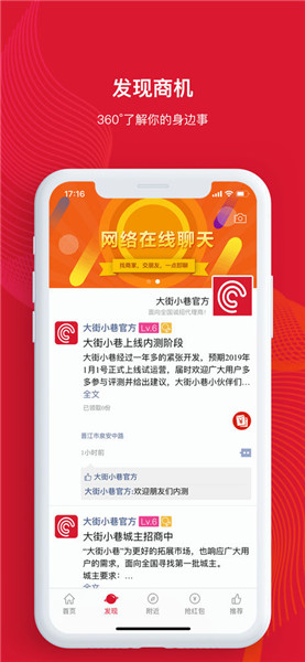 “大街小巷”是一款颠覆传统的社交商圈平台,是商家的一个在线交流交友平台。大街小巷APP更多商家优惠活动,等你来购。