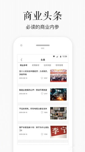 老板内参app通过独有的自然语言技术挖掘,智能算法筛选,将商业资讯标签化,构建强大的企业营销管理“知识图谱”数据库。同时,老板内参app与业界知名内容方合作,通过编辑人工整理推荐,为企业管理者提供专属的商业内参、政策解读、法律风险、盈利内参等内容,让用户在有限时间内获取有价值的商业信息。老板内参app旨在帮助经营管理者开阔战略视野,提高企业盈利能力。