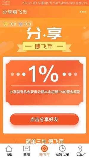 飞租分期app是一款向年轻人提供耐用消费品分期购物服务的app,采用规范的融资租赁方式运作。融资租赁是国际通用的购物分期的一种重要形式。飞租分期app与其他购物分期app在操作流程上没有明显差别,同样可以取得分期商品的所有权,但功能更贴心,更灵活,是你所见过的最任性的购物分期手机应用!