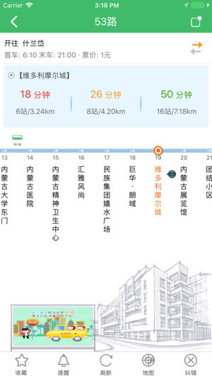 掌上青城app可以对呼和浩特市区的100多条公交线路、3000多个站点和1300多辆公交车进行实时查询,通过这款软件,乘客不但能算出公交车与自己的距离,还可以提前了解所要乘坐公交车何时到站,甚至乘客还可以设置响铃功能,只要公交车来了,手机上的铃声就会响起。