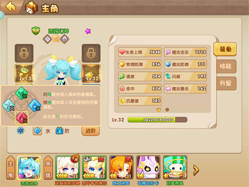 主角在成长进阶过程中还会开启其他元素属性,五阶主角开启第三属性,七阶主角开启全部四种属性。届时,玩家就可以配个战队,根据敌人的属性不同来切换主角的属性进行战斗了!