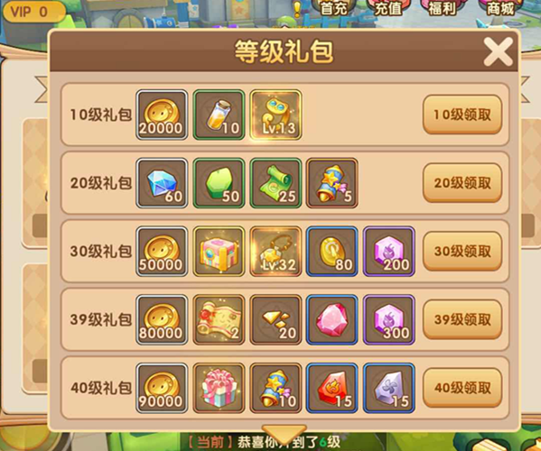 看到福利两个字就知道这里有大把免费资源了。福利这块除了提供每天的转盘奖励,登录礼包外,比较好的奖励在等级礼包、精灵祈祷这两块。等级礼包主要提供装备、宝石、经验药水等等资源,精力祈祷则提供金币和钻石奖励哦!当然,也不要忘了经常查下邮箱,谁知道各位NPC会在什么时候偷偷给你塞点东西呢!