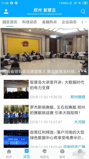 郑州智慧岛app由郑东新区智慧岛大数据实验区管委会(以下简称“郑东新区智慧岛管委会”)联合大河网共同打造的APP,作为展示郑州优良营商环境的一扇窗口,集纳智慧岛科技、基金、人才、众创、大数据等权威讯息,方便用户轻松实现“掌上‘游岛’,一览无余。”作为郑东新区智慧岛管委会对外宣传、形象展示、便捷服务的综合窗口,“郑州智慧岛”手机客户端风格清新,整体色调以蓝色为主,简洁、稳重,凸显科技感。栏目分为资讯、智慧岛、互动、服务四大版块,其中智慧岛板块集中展示智慧岛概况、特色规划以及招商政策等内容,图文并茂、功能齐全,投资者可由浅入深、由点到面,全面了解智慧岛的现在和未来。