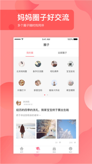 4、【圈子】大家可以分享生活点滴到圈子,找到与您三观相同的友妈。