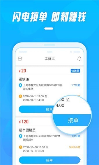 工薪记app,接单赚钱领收入一站式平台。工薪记app的平台大、单子多、费用高、结算快、有保障。同时工薪记app还是个众包平台,方便灵活从业人员接单挣钱,灵活接单,完工结算费用。