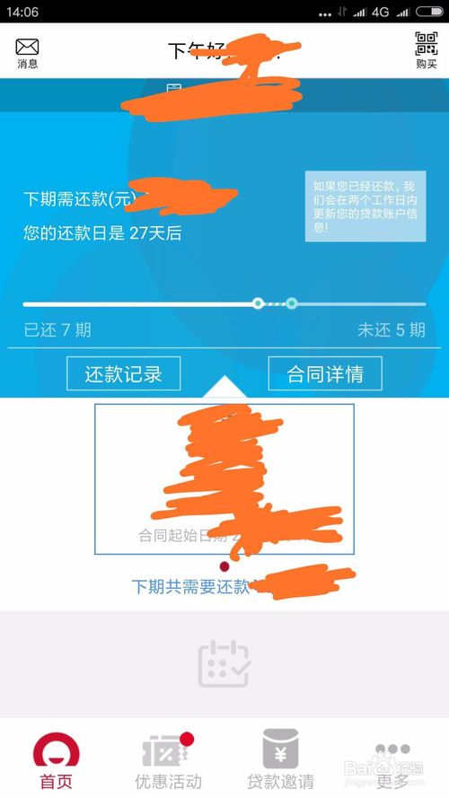 首先,点击APP页面左下角的“首页”按钮,找到对应的贷款项目(如下图示),然后再点击红框标出的“合同详情”(如下图示)