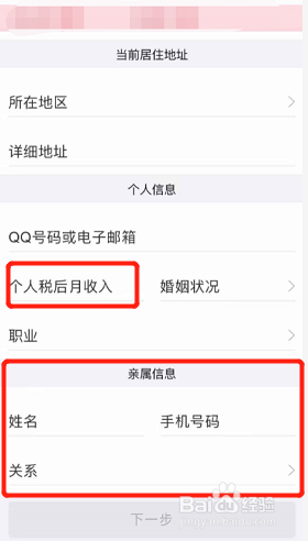 在标红处的信息一定要保证完整及准确性,比如在收入方面,实际你的收入是5K但你填了10K,这样的填写一旦被发现,可能并不能为你的贷款审批增添助力,反而还会受到影响。除此之外,在填写亲属联系信息的时候也务必要保持准确性,因为很多贷款申请人被拒的主要原因就是因为联系人接听电话不佳而致。