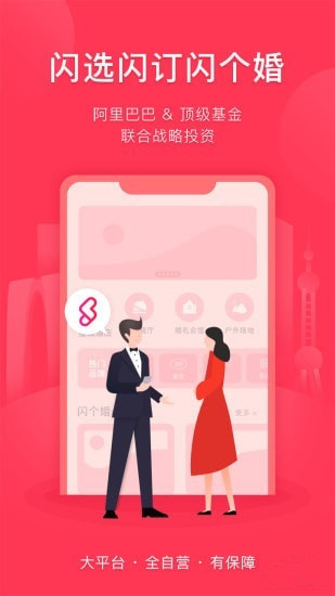 闪个婚app是阿里巴巴&Top基金联合战略投资,大品牌、好口碑,平台自营,品质有保障。闪个婚app,幻熊科技旗下互联网婚礼品牌,致力于打造高效化的一站式备婚平台。同时闪个婚app的专业团队精心呈现,贴心服务面面俱到,婚礼流程一手轻松掌控。来闪个婚app闪选闪订,全方位婚筹配套,拒绝繁琐,您的婚礼只需享受幸福与甜蜜!