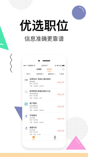 1、职位多:在校做兼职,毕业找实习,你要的工作这都有!2、覆盖广:涵盖全国各个城市,各地职位信息实时更新!