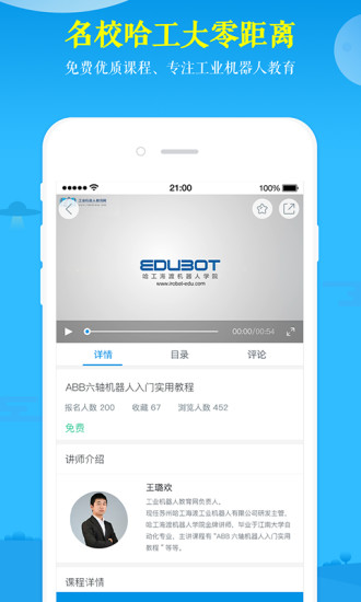 * 全新机器人学习平台 - 哈尔滨工业大学、哈工大机器人集团联合打造* 名校哈工大零距离 - 免费优质课程、专注工业机器人教育