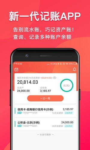 3、余额记账手机软件支持全国社保公积金账户、信用卡网银账户的手动或自动记账;