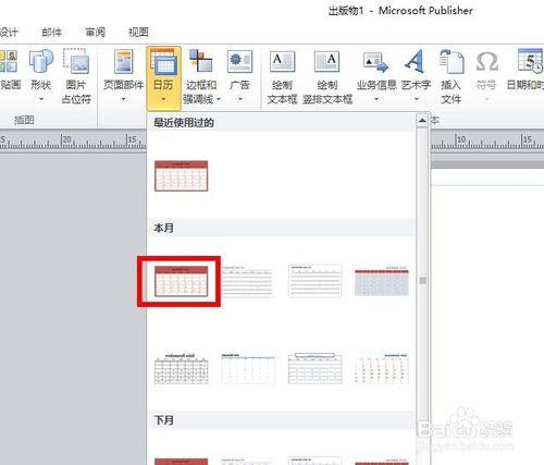 最终结果如图所示,这样我们就在Publisher2010中插入了一个日历了。