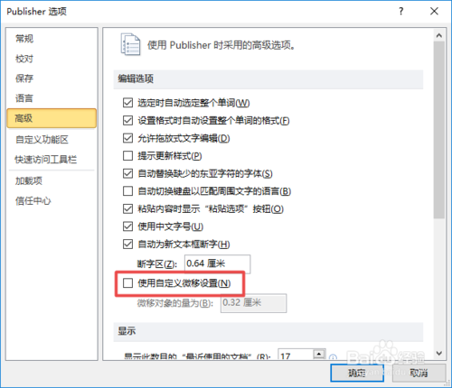 之后我们就可以看到使用自定义微移设置了,我们点击前方的勾选框;