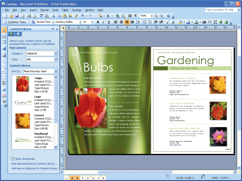 可以更快速高效地完成任务。Microsoft Office Backstage 使您通过几次单击即可保存、共享、打印和发布文档。使用 Publisher 中现在集成的功能区,可以显示最与您相关的命令,为您带来个人风格自定义体验。新的可视导航提供了每页出版物的缩略图,以便您可以快速地从一页移动到另一页。文档工作区十分简洁,这使得您可以在整洁的环境中将注意力集中在手头的任务上。