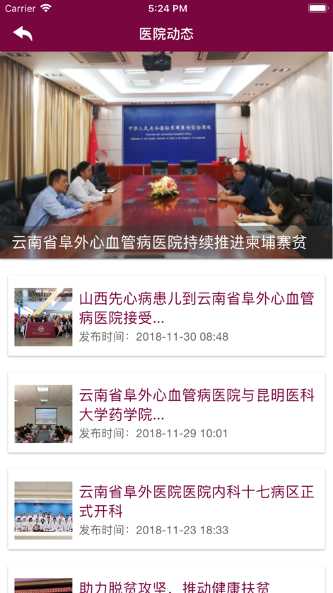 云南省阜外心血管病医院APP是医院官方移动客户端。提供医院概况、专家介绍、出诊排班、新闻推送、预约挂号、健康宣教等功能,让患者可以更便捷的就医,感受现代、高效、温馨的医院服务和健康关怀。