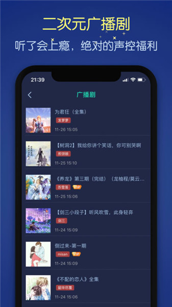 「剧好听」你追的小说和漫画在这里都有声音剧,关灯上床躺着慢慢听。纯爱、悬疑、灵异、少女、治愈应有尽有。