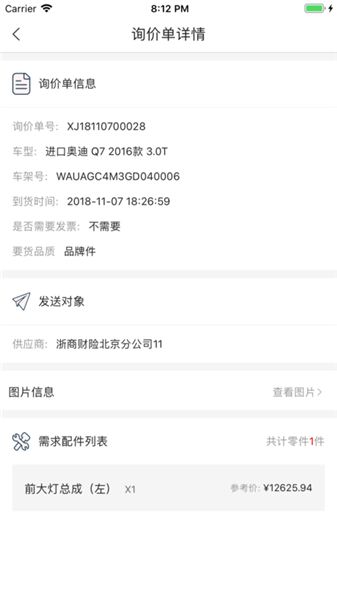 询报价:修理厂发布询价,汽配商进行报价。同时,由于平台与供应商库存已实时对接,很多常用配件已实现一秒报价,极大提高了汽配交易效率。