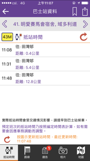 -会显示对上一次翻查的路线数据,重启App后仍有记忆。如从未搜寻过路线,App会要求输入路线。