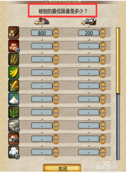 4.进入界面,设置被锁原材料的最低限量,对各必要项进行设置