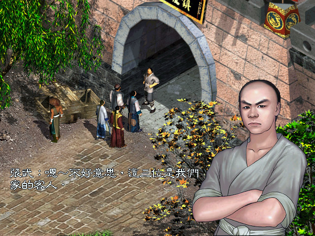 来到江夏镇郊外(在此可多练一些级),往右下角走就来到镇门边,刚想进镇时就被守卫叫住,说这里的规矩一到时间就不得入内,这时张武走过来,当着守卫的面硬行把几人带入镇里的家中。安排几人休息时,守卫就去报告胡德清,他是这个镇大财主,他叫手下庞都头带些人去张家把几个陌生人带来。庞都头等人来到张家,张武不愿交出人来,胤祥就单独和几个手下打了起来,打败庞都头的手下后(祥可学会“血刃杀”),众人又一起对付庞都头的手下(这里一共要连续打三场)。打完后(祯可学会“游龙戏水”,李卫可学会“伏犬拳法”,张武可学会“龙影拳”),胡德清出现,他命几人最好在明天之内离开此处,否则就不客气,众人听后,张武一家也只有随胤祯几人回京城去住了。