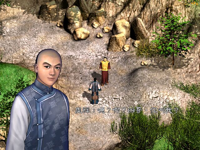 出张家府往右上角走到另一条街,在路边的滩上把所有人的装备全部换一下再出城。刚出城门口,就来了二个官兵,说是来保护二个阿哥的,祯就命官兵把张家老爹和小玉二人带到自己的府上,自己还要去黄河工程查看一下。于是四人就往右上角走(在此我发现了一个赚钱的方法,就是刚才在进城的时候在这里练级,打了很多东西都装不下了,不要紧,就让药品留在地上,进城后把剧情整完后,把装备都换了,再出城来再在这个地方多练级,让张武在此练到20级以上吧,以前打的药还在地上的,捡起再进城去药铺卖了,一来可赚钱,二来可练级,在这里最好把年大人的装备一起买齐,后面一章里他要加入进来)。刚走到桥边,庞都头就已带人在此恭候几人多时了,又要连续打三场(祯可学会“星月斩”,祥可学会“破风杀”),打败几人后,庞都头又跑了。众人来到黄河岸边,就听到右边有人说话,过去一看,才知这些难民为了养家糊口,搬运一些材料到这里来卖,可是河工要从中多收一两的过路费。祥听后又怒气冲天,上前就和河工理论,就和河工的打手打了起来(用绝招对付)。打败二人后,河督来了,祯道明身份后,河督立即把河工拿下斩首。巡视完河堤后,二人回京复命。回京来到太子府处,祯决定去少林寺参佛,祥却不想去。祯就和张武 ,李卫,年大人一起上路。而这事却让八阿哥、十阿哥和十四阿哥知道了,他们想杀祯,让他到不了少林寺。