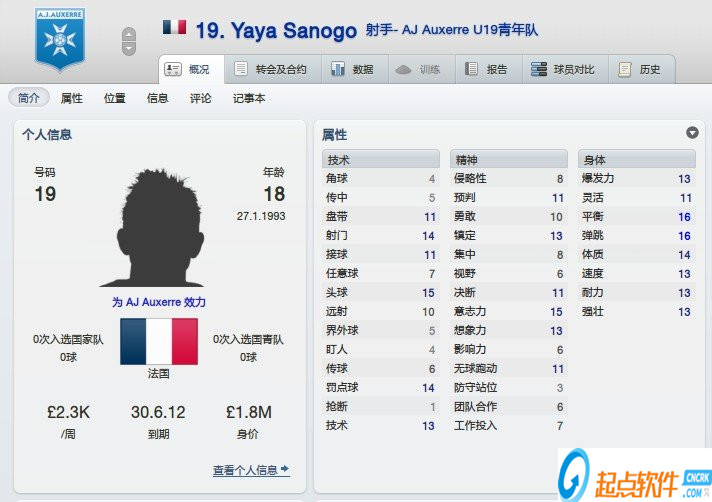 18岁,买来即可战,高中锋,头球无敌。