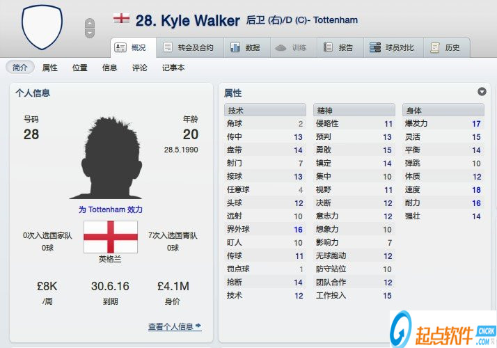 右后卫,热刺小牛,速度19的右后卫是啥概念你知道不?
