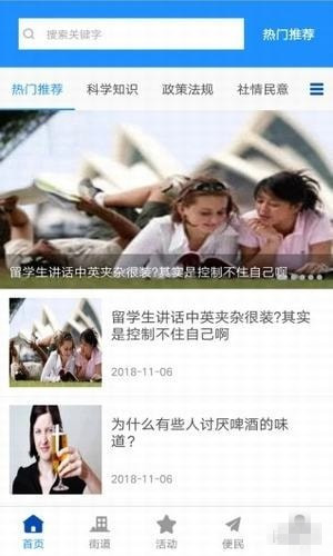 科普户户通app为用户提供各类资讯及活动信息,科普户户通app方便用户及时发现与参与到相应的活动及讨论中。街道与社区功能增加了用户之间的沟通与协调,同时可以展现各个街道与社区自己的风采。