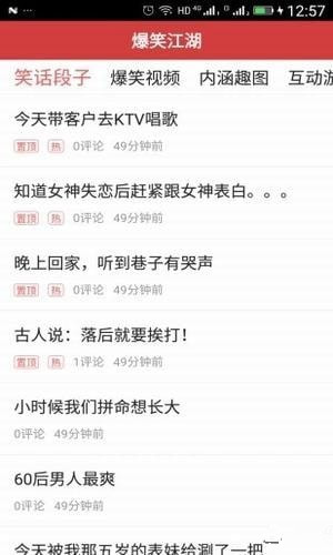 爆笑江湖app不怕你不笑,只怕笑掉牙! 爆笑江湖app有着各种搞笑笑话、段子、视频、趣图、糗事、重口味等内容,不容错过!不怕你看不到,只有你想不到哦!绝对是居家旅行,行走江湖的必备利器!温馨提示:吃饭喝水或者开会时,请谨慎使用!