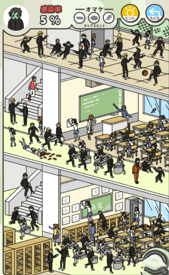一款非常好玩的日系寻找僵尸休闲小游戏,非常简单的玩法,僵尸混入了人群中,玩家要从各个场所里将僵尸找出来,如果不及时找出僵尸,僵尸病毒会不断开始扩散,如果所有的人都感染了僵尸病毒,城市就会被毁灭,看看你是否有火眼金睛吧。