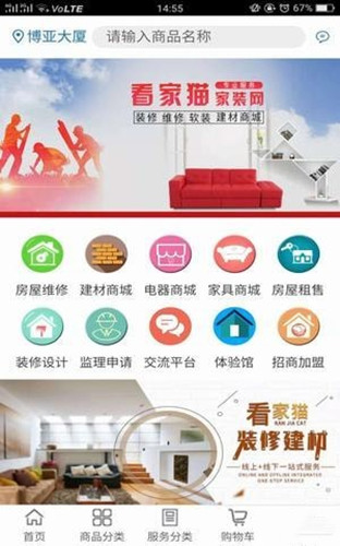 看家猫手机版是一款专业实用的家装设计应用。看家猫的功能十分齐全,包含了装修设计、建材购买和新房装修,给你一站式的管家服务。并且看家猫的装修材料和建材都是精选高品质的,为你打造优质的家装设计。