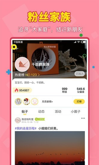 粉丝家族:找到自己的家族,创建自己的小圈子,秀出自我的同时不忘为家族做贡献。