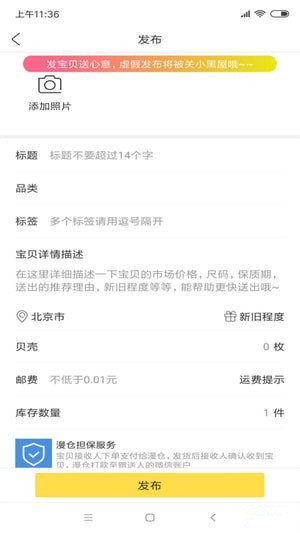 【方便快捷】分享方可以在数秒内上传自己的闲置物品到漫仓app,成交后预约快递发货,整个分享过程不存在砍价和无尽问询。