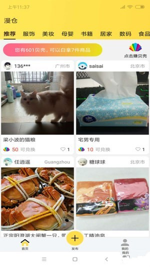 漫仓app是一个闲置物品免费分享、兑换平台。用户可以将自己的闲置物品上传到漫仓app,可用来与其他用户的闲置物品交换,这种全新的交易模式,不仅省时省力,更提供了“没有金钱回报,胜似金钱回报”的巨大愉悦感。