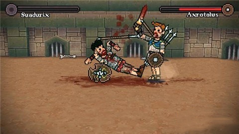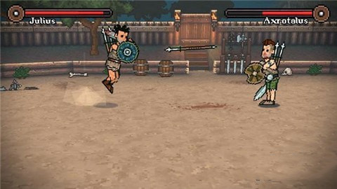 弹跳角斗士游戏是一款复古像素画风的2D角斗士题材格斗竞技横版动作游戏,弹跳角斗士游戏基于物理机制和2D动画将给玩家展现儿时街机格斗游戏的画面和动作打击感,弹跳角斗士游戏以古罗马帝国时代为背景,拥有来自三个不同种族的就12个角色面孔和90多种装备武器可供玩家任意选择体验,如剑,斧头,狼牙棒,盾牌,头盔,盔甲,只要你的格斗水平够高,就能获取并使用它们。