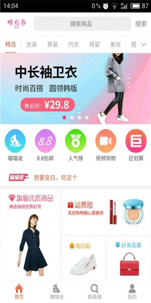 软件使用流程:淘宝天猫挑选心仪商品—复制商品链接—打开唯有券app—领取内部优惠券—点击购买。除此之外,独有的喵喵说图文可供大家分享到朋友圈丰富日常。