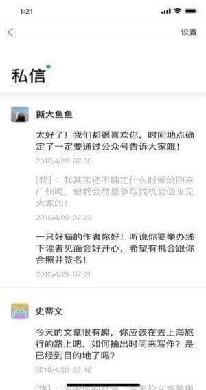 3. 可以及时收到已关注用户的私信消息,实时沟通。